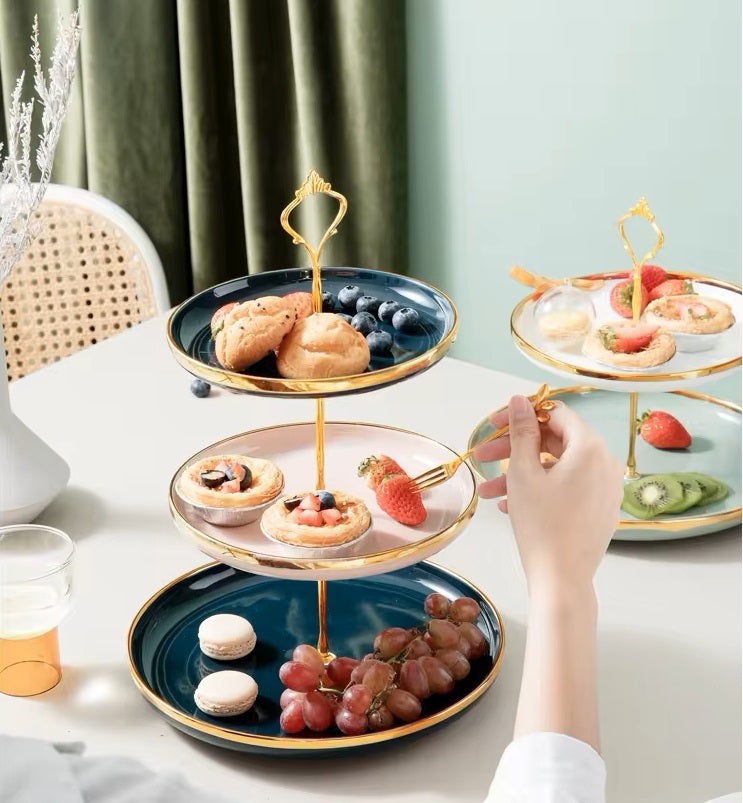 Cupcake Stand Ceramic with Gold Rod 3 Tiers (MW)