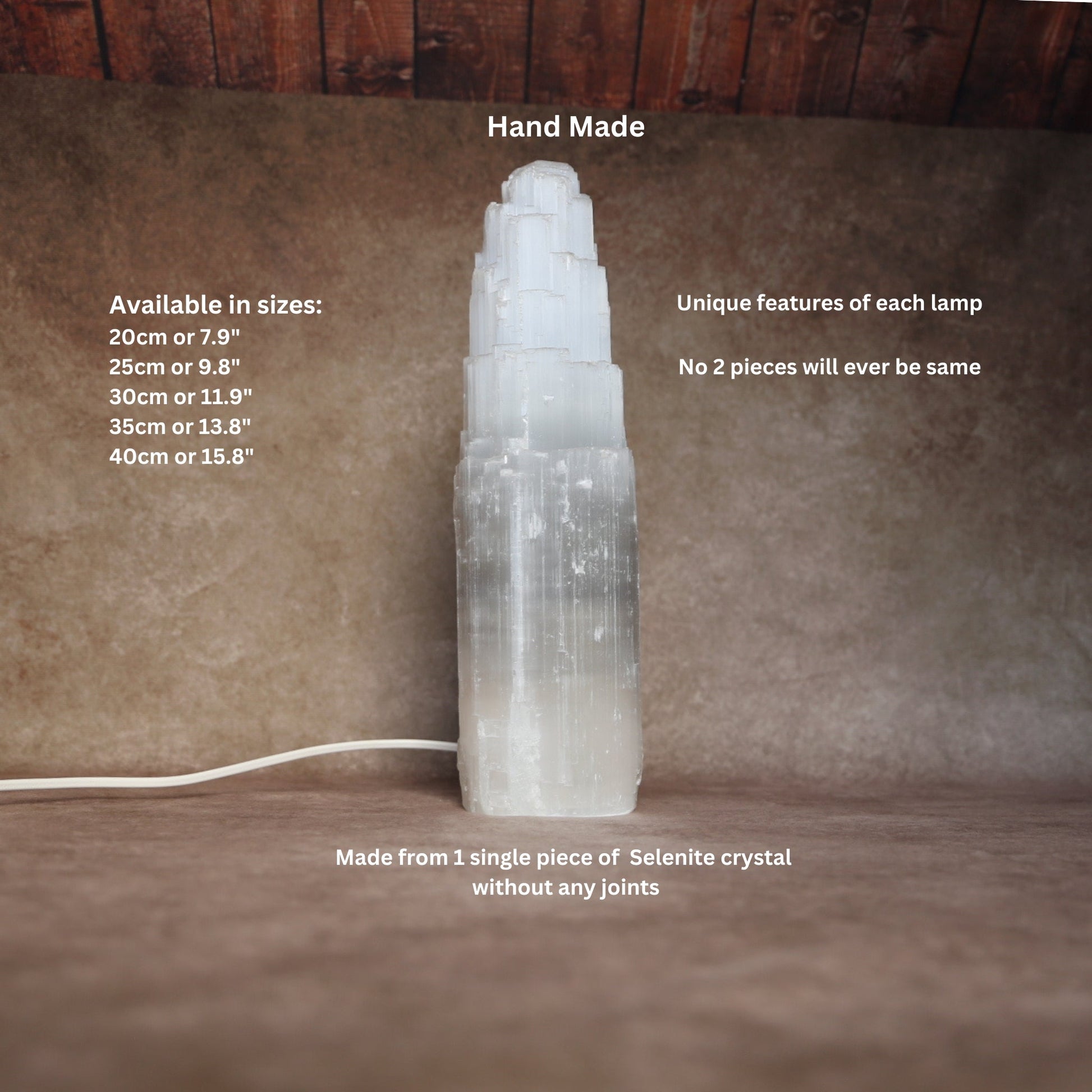 Natürliche Turmlampe aus Selenit – mehrere Größen (ES)